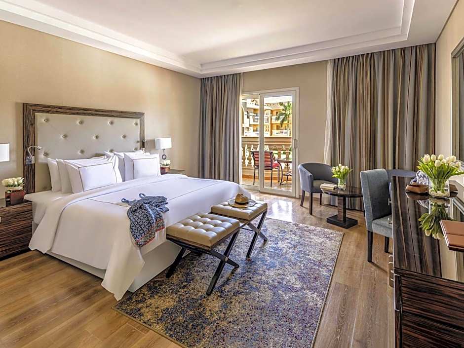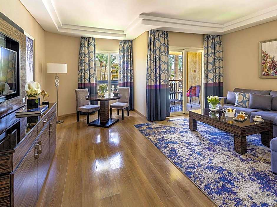 Elegant interiors, a bedroom with a king bed, and a sitting area with a sofa in a convenient design, as well as pool or garden views, appeal to all guests desiring a mesmerizing holiday experience in a Junior Suite.